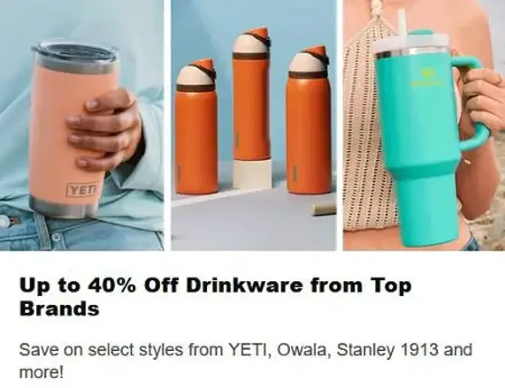 Hurry, limited time only! Shop in store and get up to 40% off drinkware from top brands.