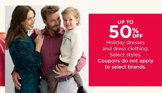 Hurry in and enjoy up to 50% off holiday dresses and dress clothing in store for a limited time.