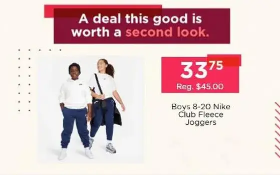 Stop by and get $33.75 Boys 8-20 Nike Club Fleece Joggers in store for a limited time.